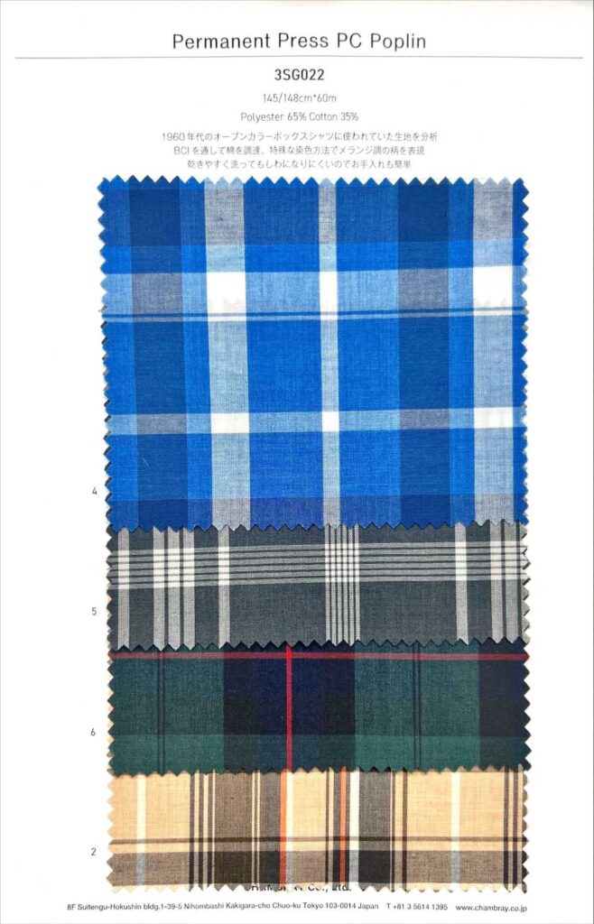 Dòng vải 3SG022 được phát triển dựa trên việc phân tích chất liệu từng được sử dụng cho áo sơ mi cổ mở (open-collar box shirt) của thập niên 1960.